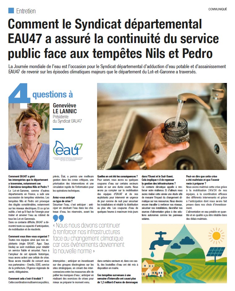 Découvrez l'interview de Geneviève Le Lannic, Présidente d'EAU47 en cliquant ICI